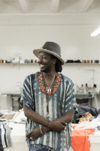 “ Artiste dans l’âme, Moustapha est titulaire d’un diplôme en finances de la California State University of Northridge. Avec des valeurs comme la discipline et de contrôle acquis notamment en jouant au football en division 1 de la NCAA. Moustapha est devenu un designer talentueux, un chapelier et un créateur de bijoux, qui s’inspire d’artistes comme Rick Owens et Bob Marley. Né et élevé au Sénégal, Moustapha possède une riche histoire culturelle qui guide sa créativité. Son amour pour les voyages culturels et musicaux, nourrissent également son inspiration et lui permettent de gérer Renaissance Creative Studios son atelier ainsi que la marque de vêtement éponyme.”
